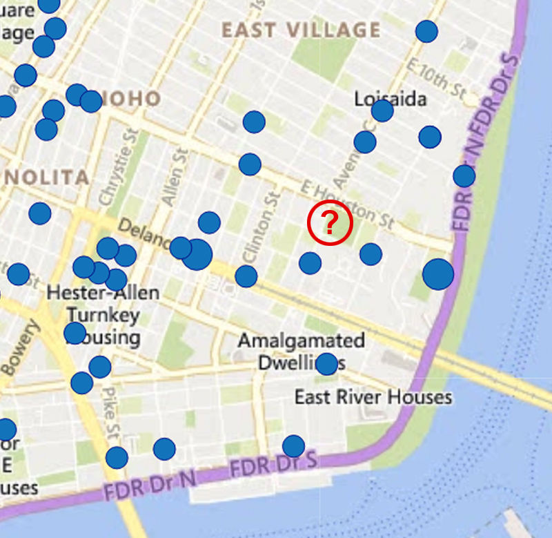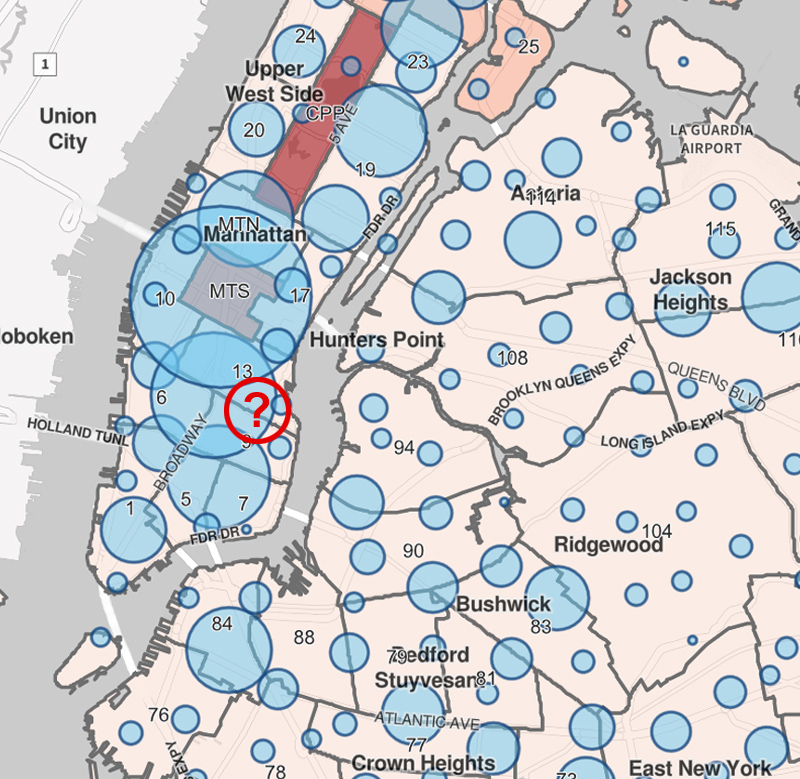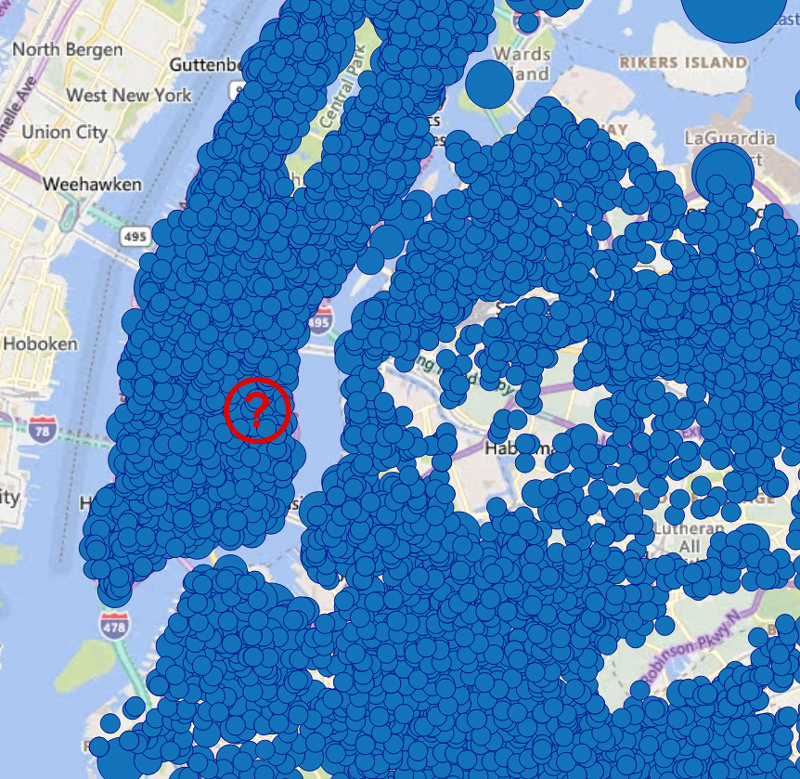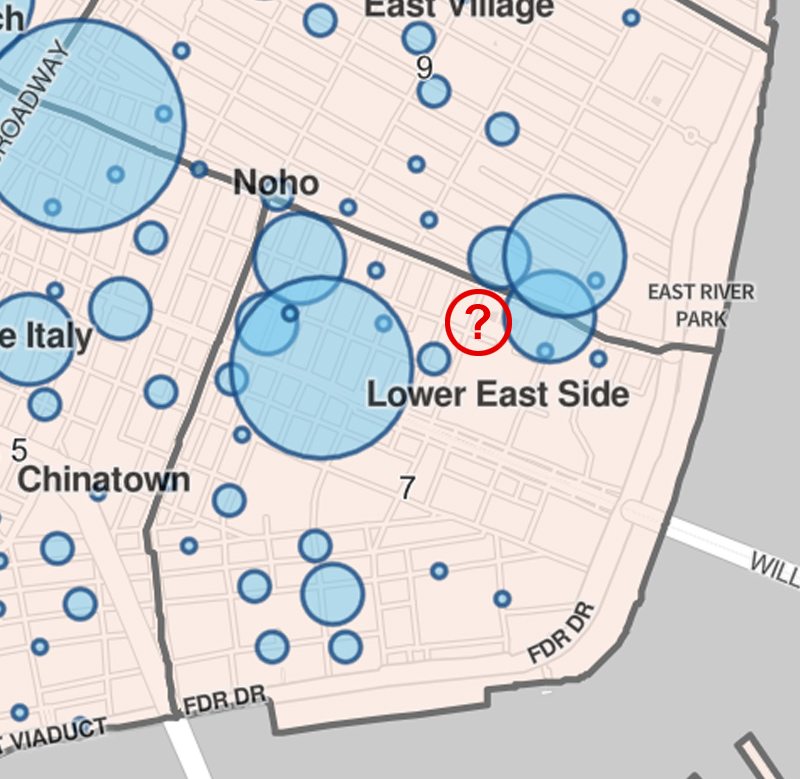 – Blue clustering circles that look like geographic zones but are not — and become misleading when interpreted as such.