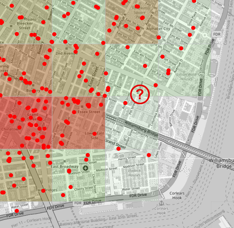 No spatial aggregation at all — users cannot get a numeric, location‑specific crime estimate.